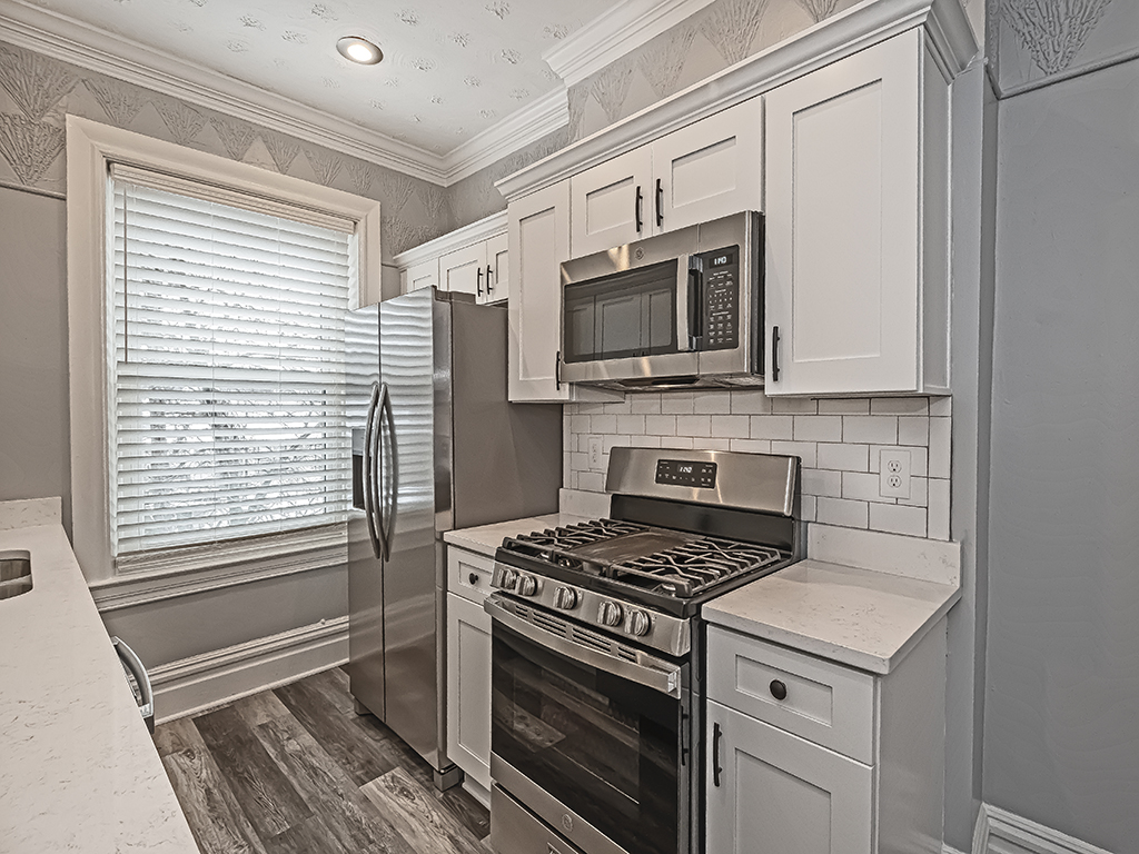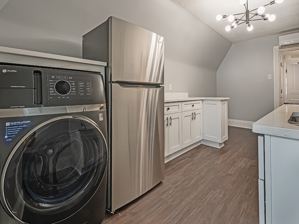 - In-unit washer & dryer, gas range/oven, dishwasher, microwave, fridge, frame TV, window blinds, central AC.