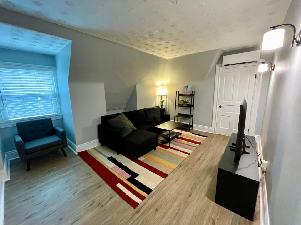 - In-unit washer & dryer, electric range/oven, dishwasher, microwave, fridge, frame TV, window blinds, mini-split AC & heating